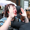 Eylem sırasında polisin yumruk attığı bir kadın yaralandıktan sonra gözaltına alındı.