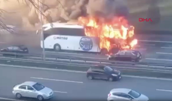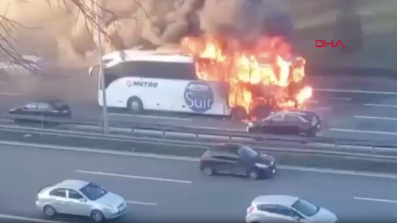 Son dakika haberi: Bağcılar TEM Otoyolu'nda yolcu otobüsünde yangın çıktı. Otobüsten dumanların yükseldiğini gören şoför, aracı durdurdu.