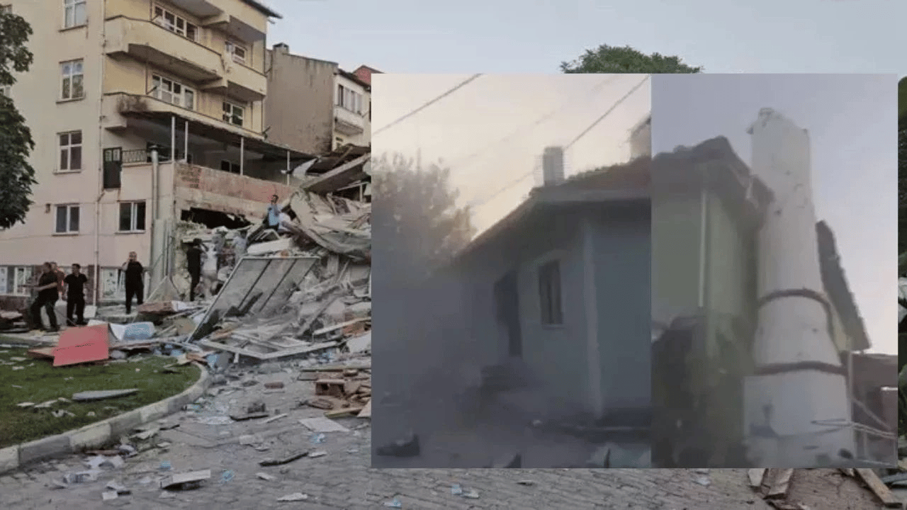 Balıkesir'de 6,1'lik deprem sonucu camii minaresi yıkıldı