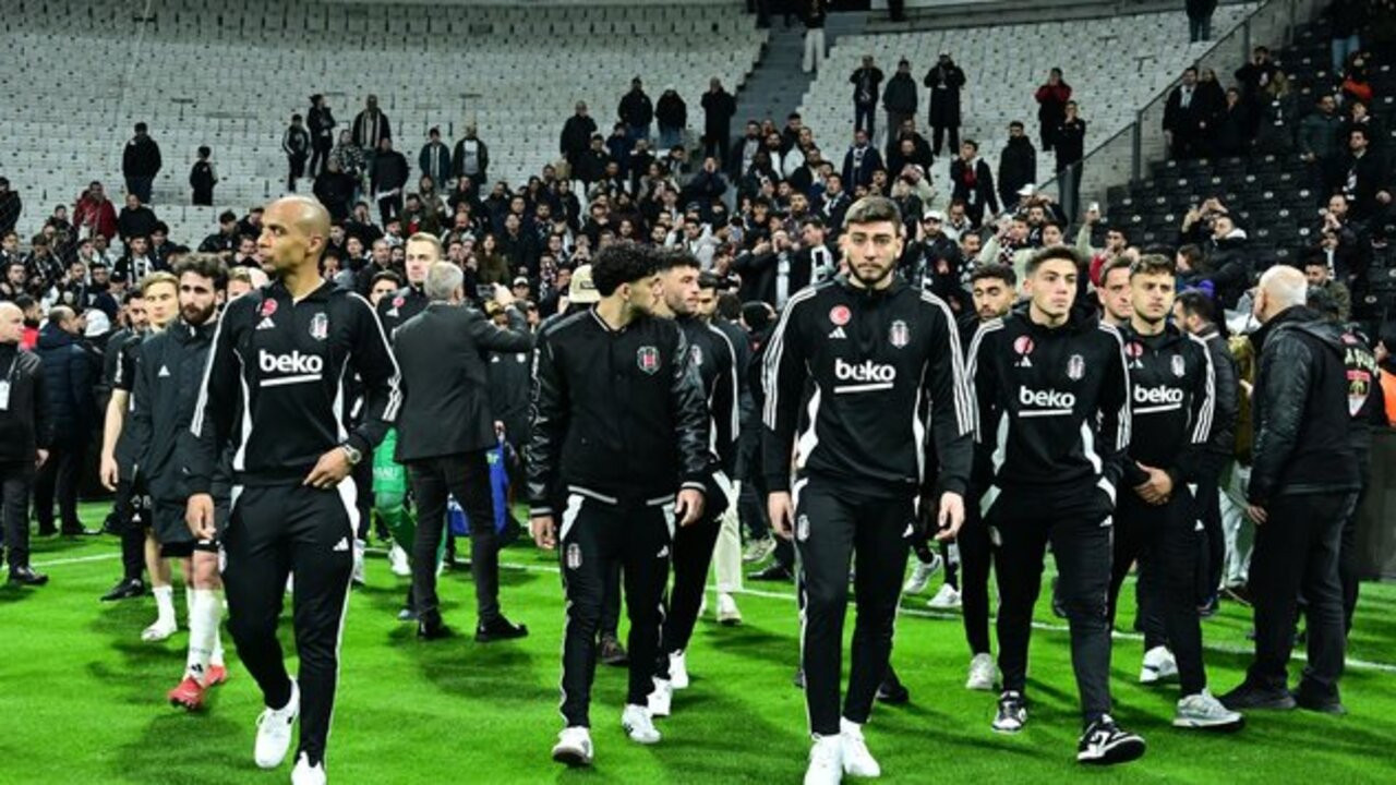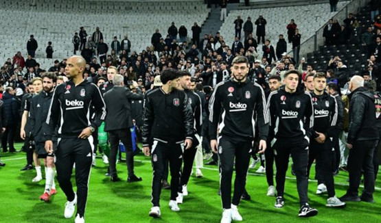 Soyunma odalarından sahaya dönen Beşiktaşlı oyuncular, taraftarların takıma yönelik şiddetli tepkilerini dinledi ve onları sakinleştirmeye çalıştı.