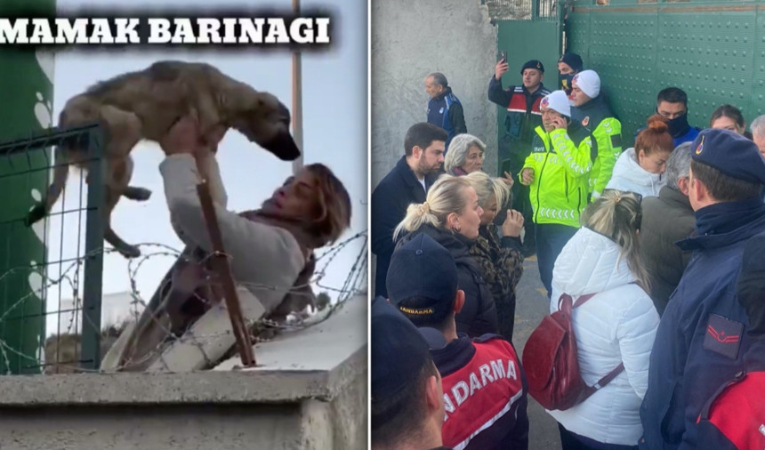 Mamak'ta hayvanların katledildiği iddiasıyla Mamak Belediyesi'ne ait barınak önünde toplanan kalabalık bir grup, köpekleri barınaktan tek tek çıkarıp sokağa saldı.
