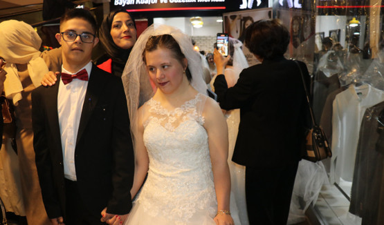 Etkinlik kapsamında down sendromlu bireyler, gelinlik ve damatlıklarını giyerek hayalini kurdukları özel günü yaşama fırsatı buldu.
