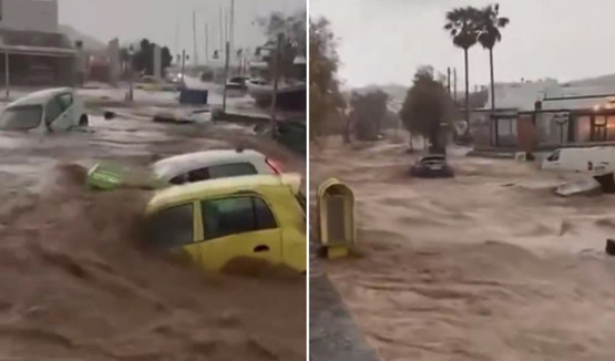 Öğle saatlerinde başlayan yoğun yağış, Ege’nin gözde turistik adaları Paros ve Noussas’ı vurdu. Dağlardan gelen sel suları, Paros’un şehir merkezine akarak sokakları göle çevirdi. Araçlar selin şiddetiyle denize sürüklendi, evler ve iş yerleri sular altında kaldı.