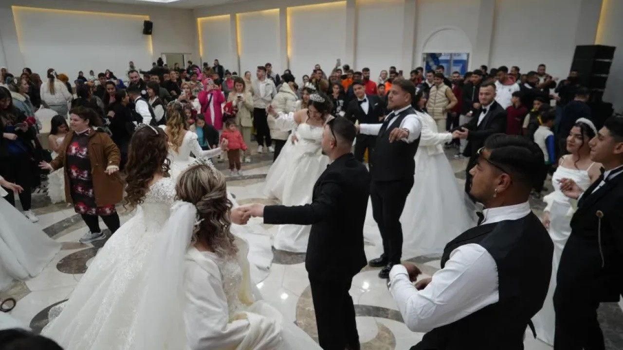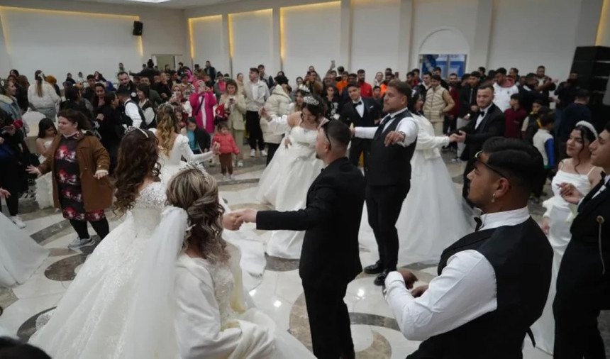 Eğlence doruğa tırmandı! Romanlara toplu düğün: 15 Roman çift nikahlandı...