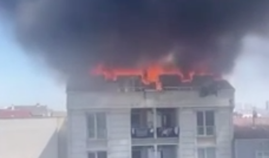 Esenyurt’ta korku dolu anlar: 4 katlı binanın çatısında yangın