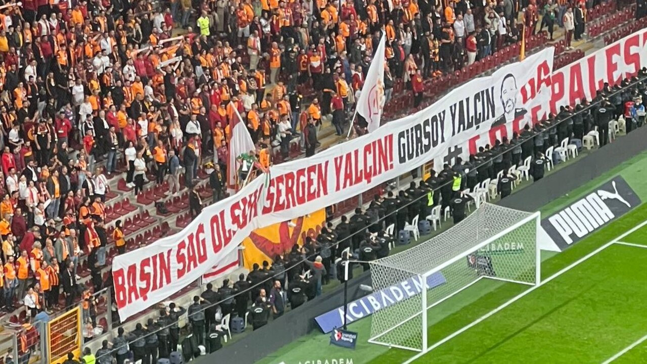 Galatasaray taraftarı, “Başın Sağ Olsun Sergen Yalçın! Gürsoy Yalçın” pankartı açtı.