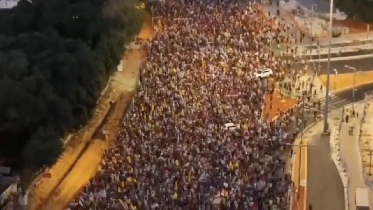 İsrail'in Tel Aviv kentinin sokaklarına çıkan on binlerce İsrailli, hükümetin Gazze'ye saldırıları sona erdirmesi ve derhal anlaşma imzalaması talebinde bulunuyor.