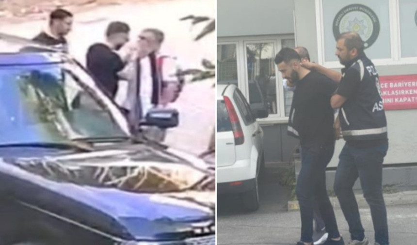 Araçtan inen sürücü O.C. (33), kısa süreli tartışmanın ardından babanın boğazına sarıldı ve çocuklarının gözleri önünde tokat attı.