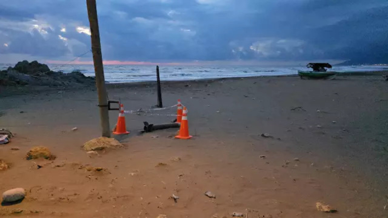 Dalgaların getirdiği düşünülen roket, ekipler tarafından güvenlik altına alındı.