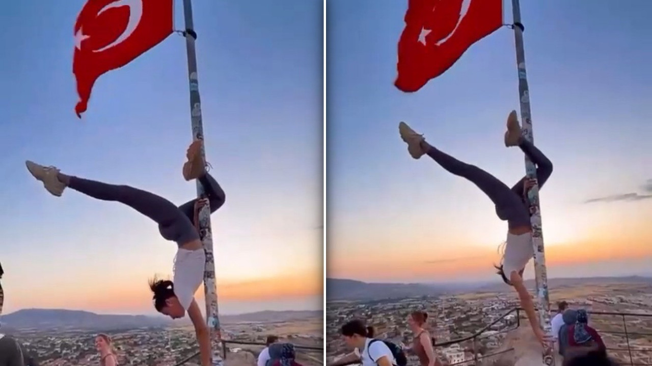 İnfial yaratan görüntüler: Kapadokya’da bayrak direğinde skandal hareket! Valilik devreye girdi