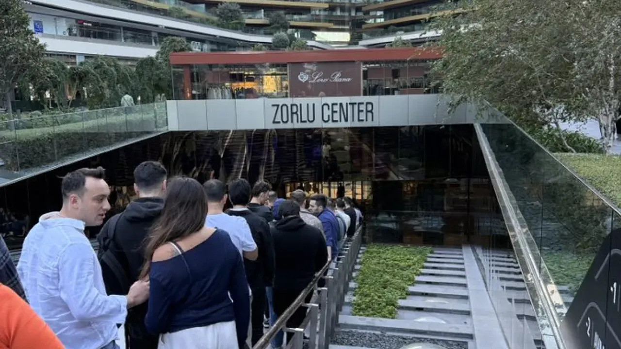 Zorlu Center'ın önüne gelen vatandaşlar, yeni telefonlarına kavuşmak için uzun süre bekledi. Bazılarının geceden geldiği ve bekleme sırası için de liste yapıldığı görüldü.