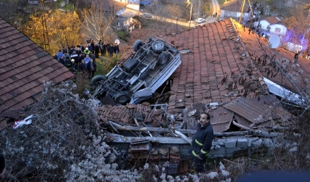 Tek katlı boş evin çatısına düşen kamyonetin sürücüsü yaralandı.Durumun bildirilmesi üzerine, olay yerine sağlık, itfaiye ve polis ekipleri sevk edildi.