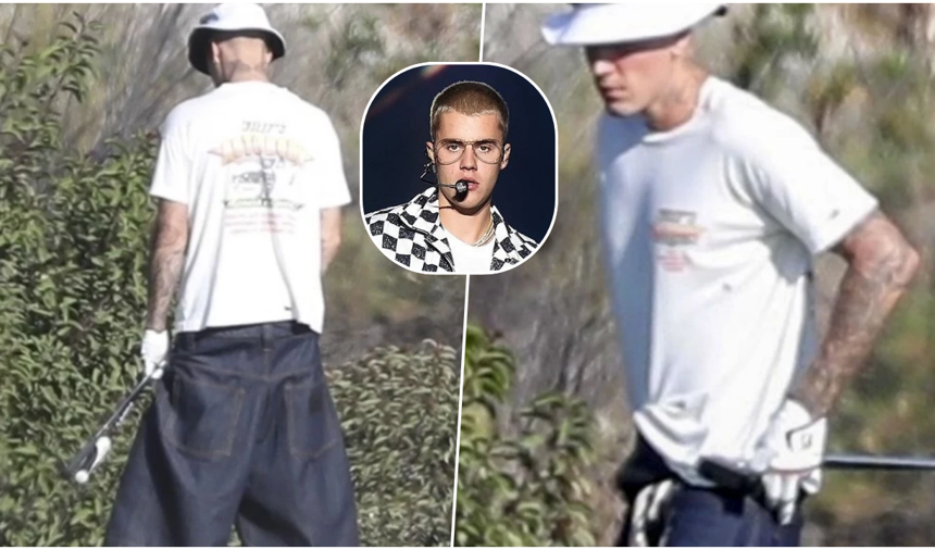 Justin Bieber golf sahasında çalılara işedi!
