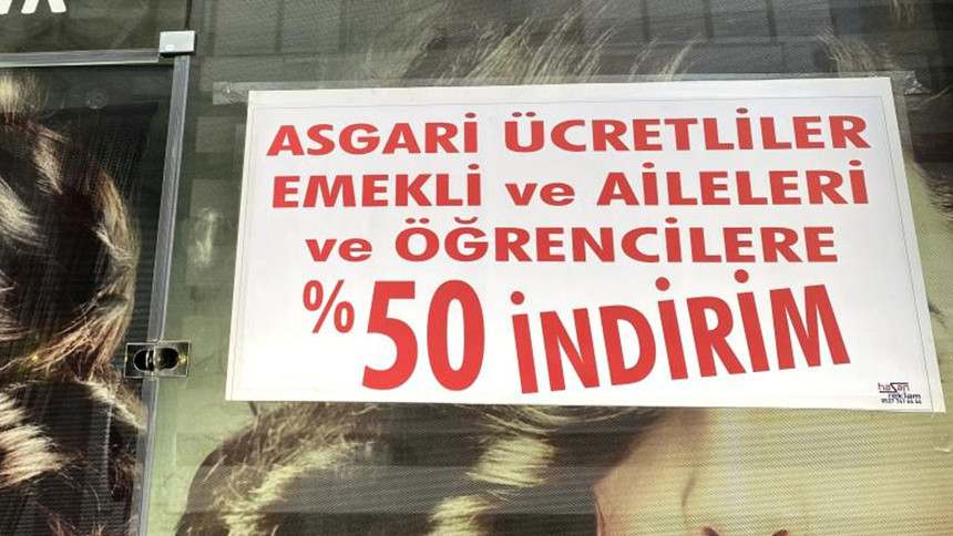 Manisa'nın Alaşehir ilçesinde bir kuaför ve güzellik salonu yeni yıla özel kampanya yaptı. Kampanya kapsamında emekliler, öğrenciler ve asgari ücretlilere yüzde 50 indirimli hizmet sunuyor.