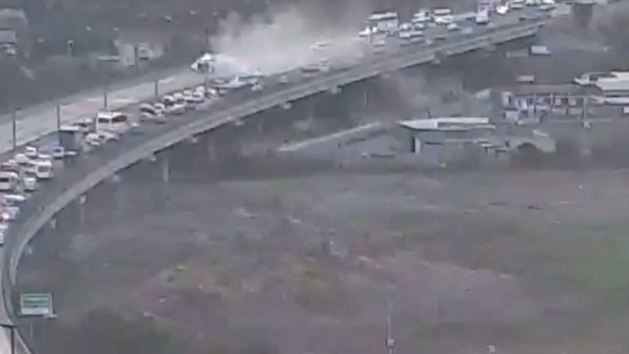 Bu sabah saatlerinde TEM Altınşehir-Bahçeşehir yönü Altınşehir viyadügünde oksijen yüklü gaz tankeri devrilmişti. Kaza anına ilişkin görüntüler ortaya çıktı. İşte dehşete düşüren o görüntü...