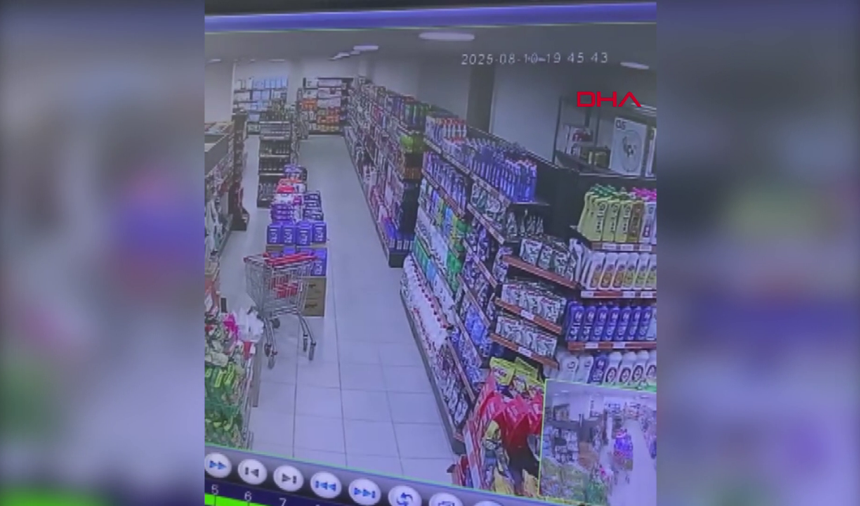 Görüntülerde, deprem sarsıntısıyla birlikte raflardan ürünlerin düştüğü, müşterilerin panikle dışarı çıkmaya çalıştığı ve çalışanların hızlıca tahliye için müdahale ettiği anlar net şekilde kaydedildi.