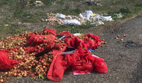 Tekirdağ’da, Muratlı-Süleymanpaşa yolu kenarına dökülen çuvallar dolusu soğan, vatandaşların büyük tepkisini topladı.
