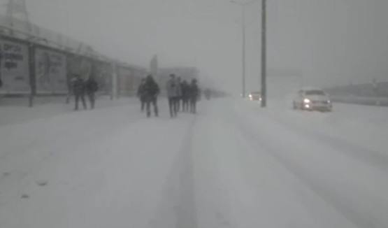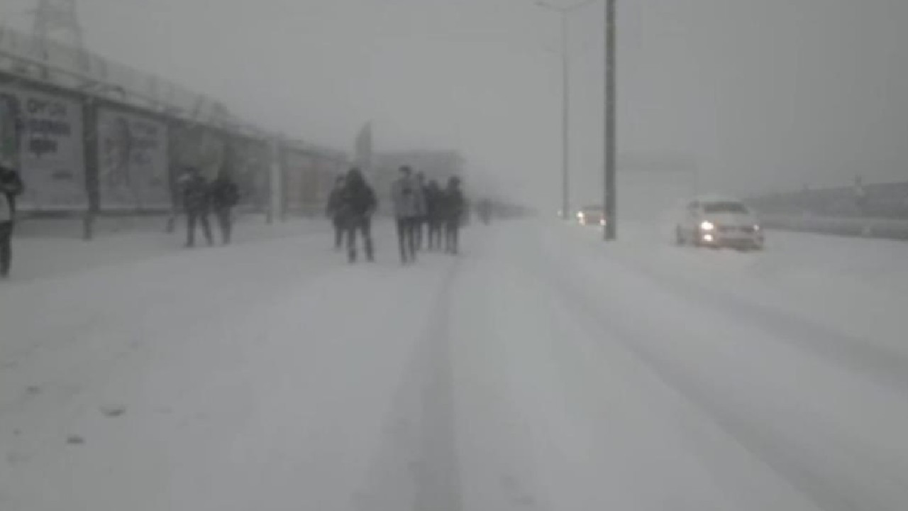 İstanbul’un trafik yükünü çeken E-5 karayolunda da trafiğin kitlenmesiyle yüzlerce araç yolda mahsur kalırken, bazı vatandaşlar toplu taşıma araçlarına binemediği için yürümeye başladı.