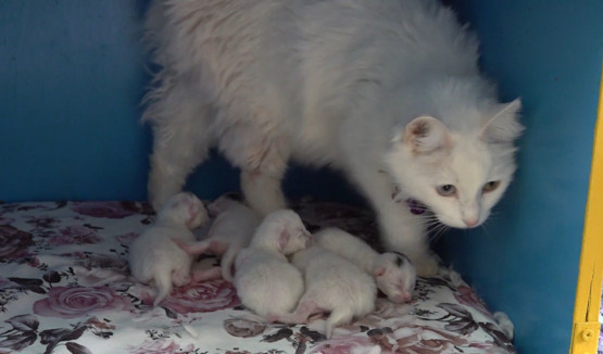Şevli, “Yeni doğan yavrularımız ipeksi beyaz tüyleri ve başlarında siyah benekleriyle doğuyor. İki buçuk aylık olduklarında, bir gözü turkuaz mavisi, diğer gözü kehribar sarısı olan eşsiz Van kedilerimiz ortaya çıkıyor. Bazılarında ise her iki göz aynı renk olabiliyor” dedi.