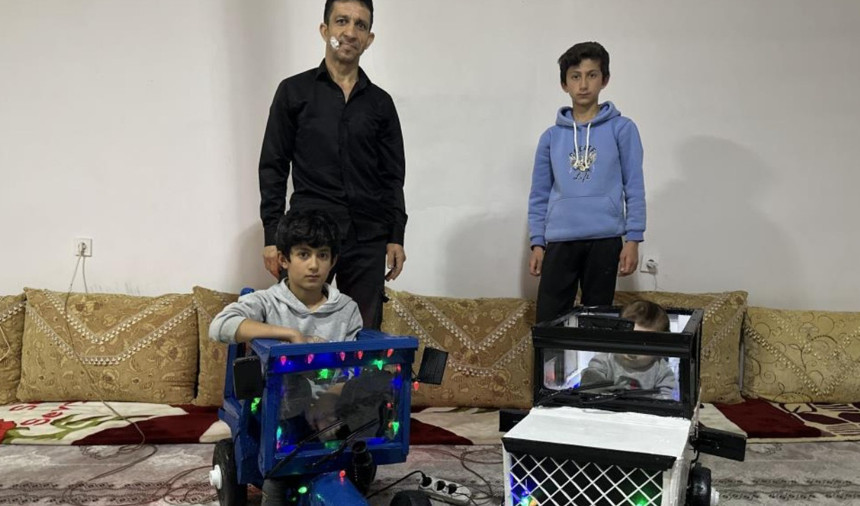 Yusuf Duru, çocuklarının oyuncak hayalini gerçekleştirmek için çevreden plastik, tahta ve metal atıkları topladı. Evde titizlikle çalışarak bir traktör ve araba tasarlayan Duru, “Çocuklar hep benden araba ve traktör istiyordu, ama çok pahalı olduğu için alamıyordum. Onlar üzülmesin diye atık malzemeler topladım ve yapmaya başladım. Şükür, 2 ayda tamamladım. Biraz da olsa traktöre benzettim. Çocuklar evde bunlara biniyor, onların mutluluğu beni daha çok mutlu ediyor,” dedi. Duru, iş bulma umudunu da dile getirerek, “Sadece çocuklarım için çalışmak istiyorum. Allah kimseyi fakirlikle sınamasın,” sözleriyle duygularını paylaştı.
